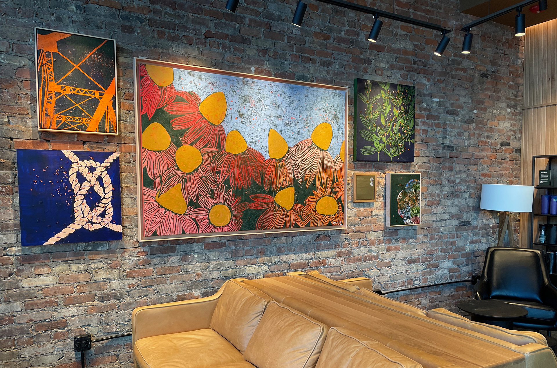 A series of paintings created for the Starbucks Art Program, in collaboration with Annie Fahrenbach. These pieces use the natural world and man-made objects to explore community and connection. Installed and on-view at Starbucks in downtown Wheaton, IL.